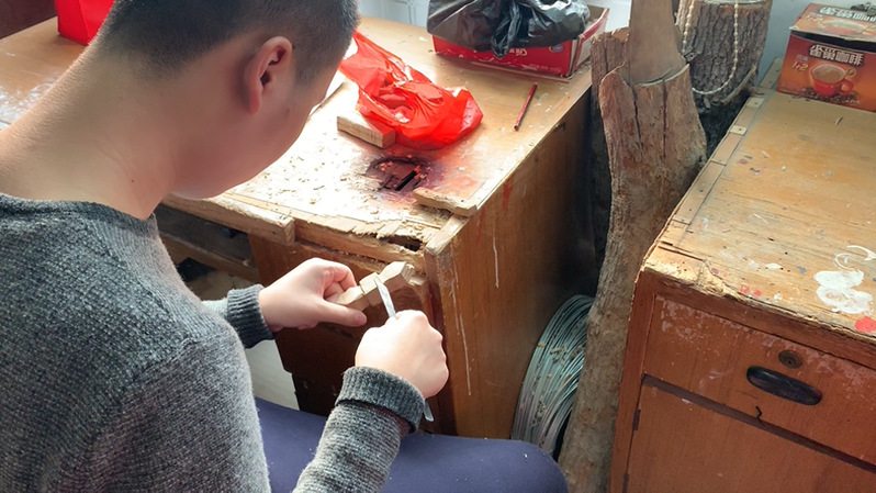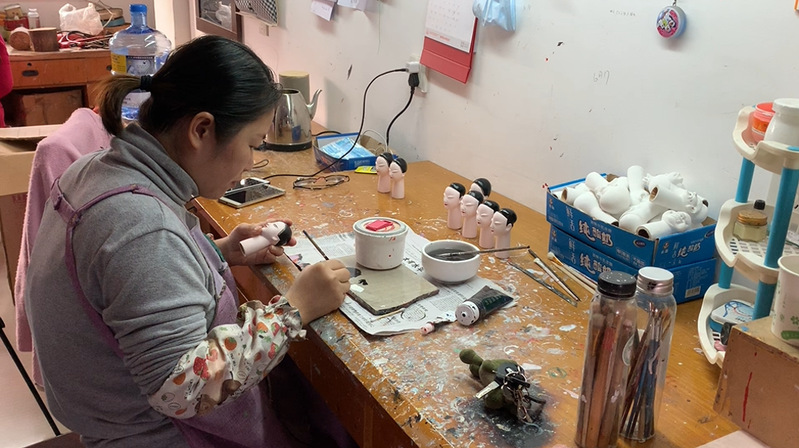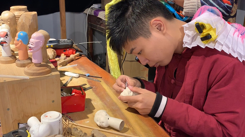 漳州木偶传承人制作木偶偶头