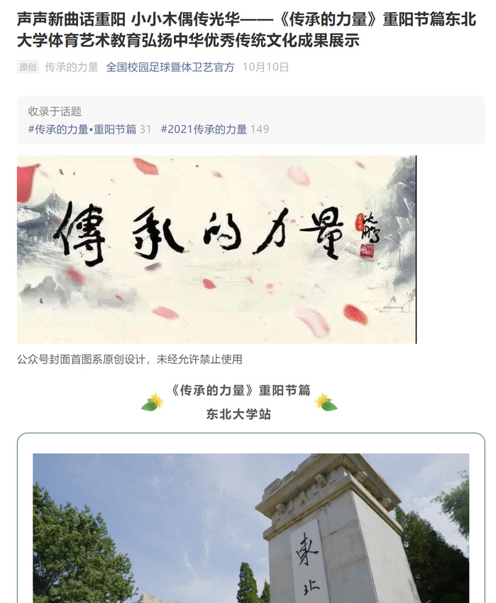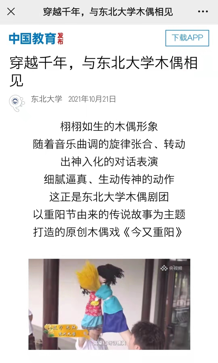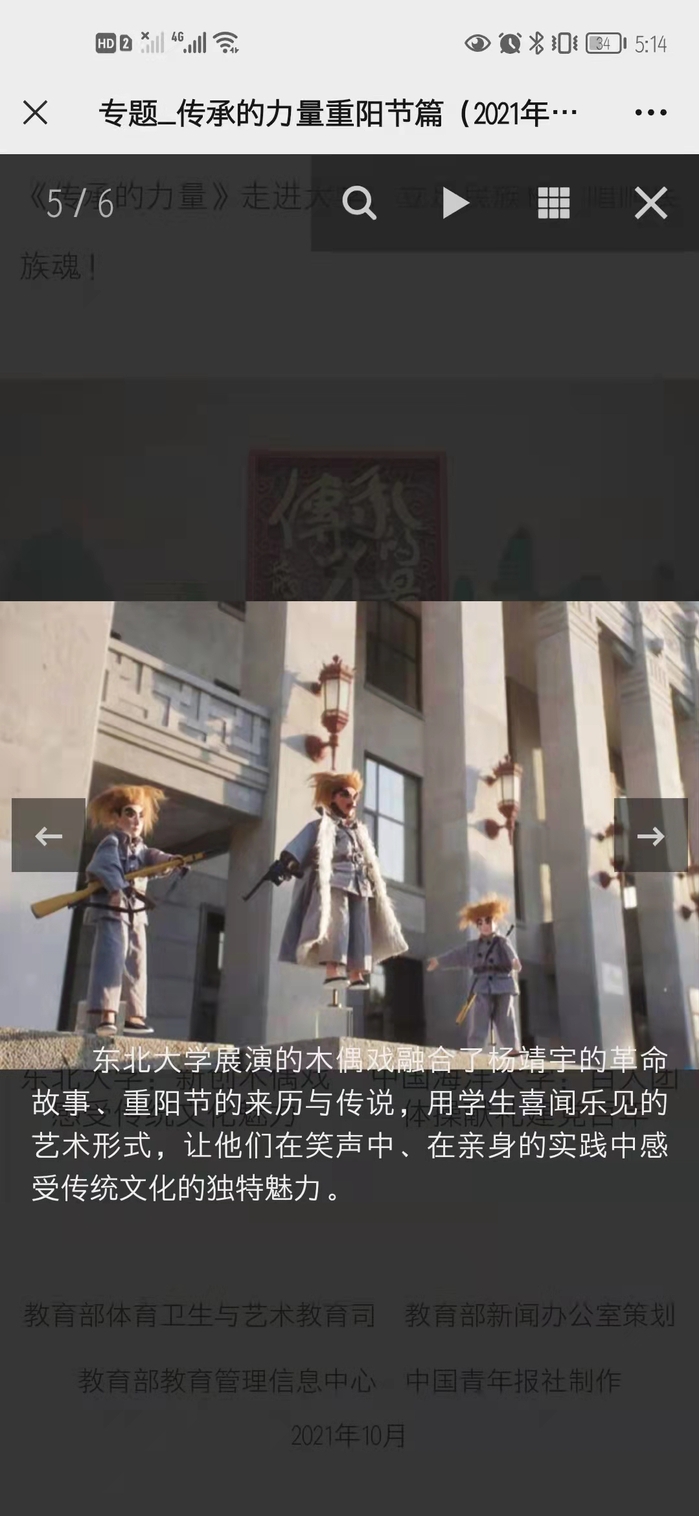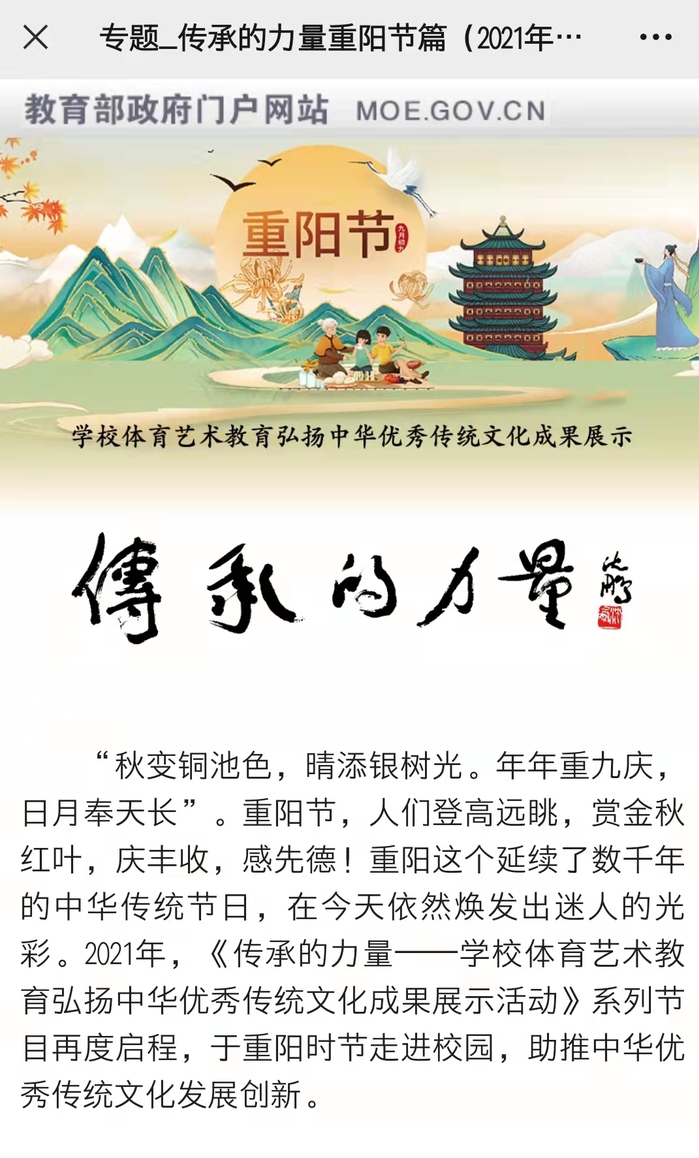 教育部门户网站《传承的力量》重阳篇新闻报道